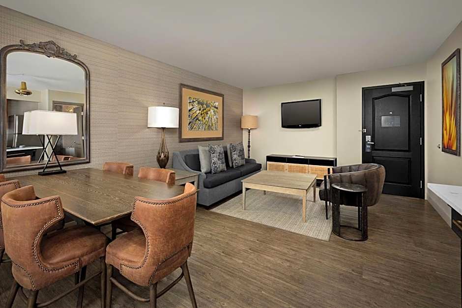 This suite features a fully equipped kitchen, a 42-inch flat-screen cable TV and a DVD player. A sofa bed is also included.